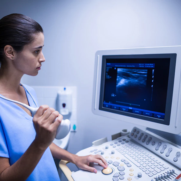 Sonography is a diagnostic medical test that uses high-frequency sound waves, or ultrasound waves, to create images of tissues, glands, organs, and blood or fluid flow within the body. This test is also referred to as an ultrasound or sonogram.Sonography uses a device called a transducer on the surface of the skin to send ultrasound waves and listen for an echo.